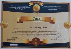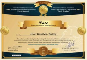 Hilala Karahan – The Bogdani Prestitious Prize International Writers Association Bogdani, headquarter in Brussels and Pristina has decided to give the International Prize BOGDANI to Mrs. Hilala Karahan, Kosova. This is a honorary prize and its given with the motivation For the “for her poetry in international affairs” best international writer translated into Albanian language presented to IWA Bogdani. This Prize, which gives IWA Bogdani is traditional and we gives every year on 27 November for the Independ day of Albania. 27/11/2023, Pristina